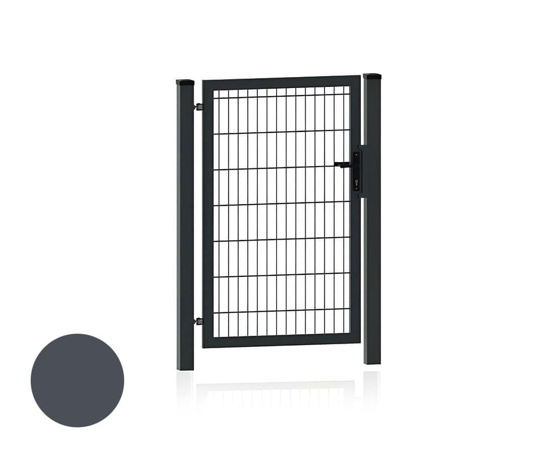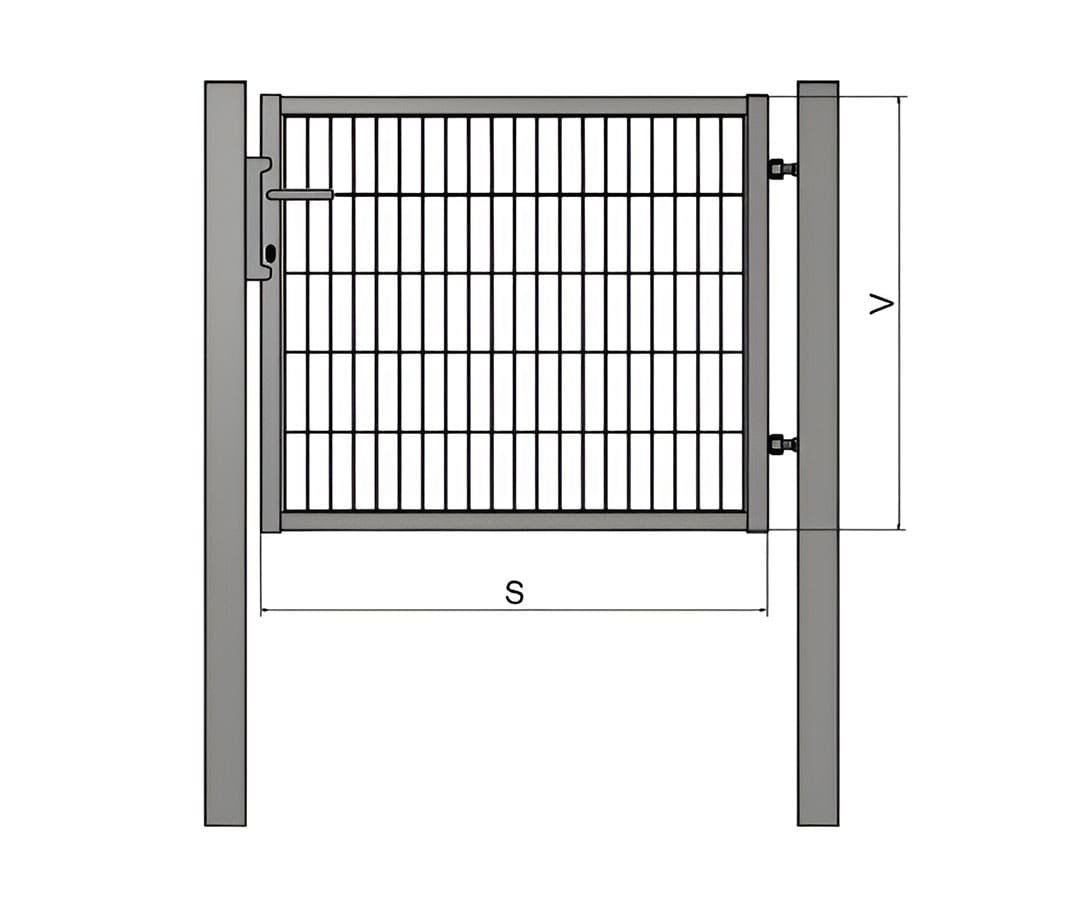 A kapuszárny szélessége 98,5 cm. A kiskapu 4×4 cm-es profilokból van hegesztve, az oszlopok pedig 6×6 cm-es profilból készültek.