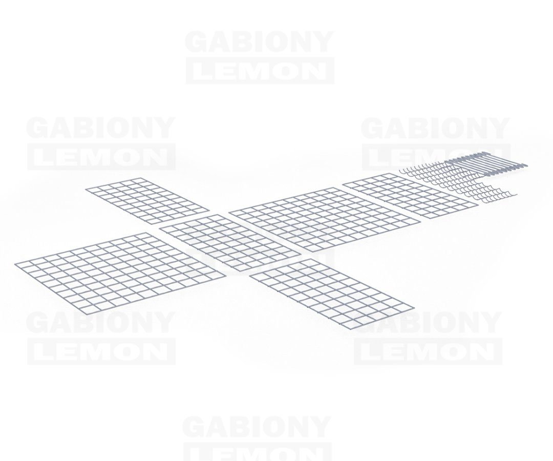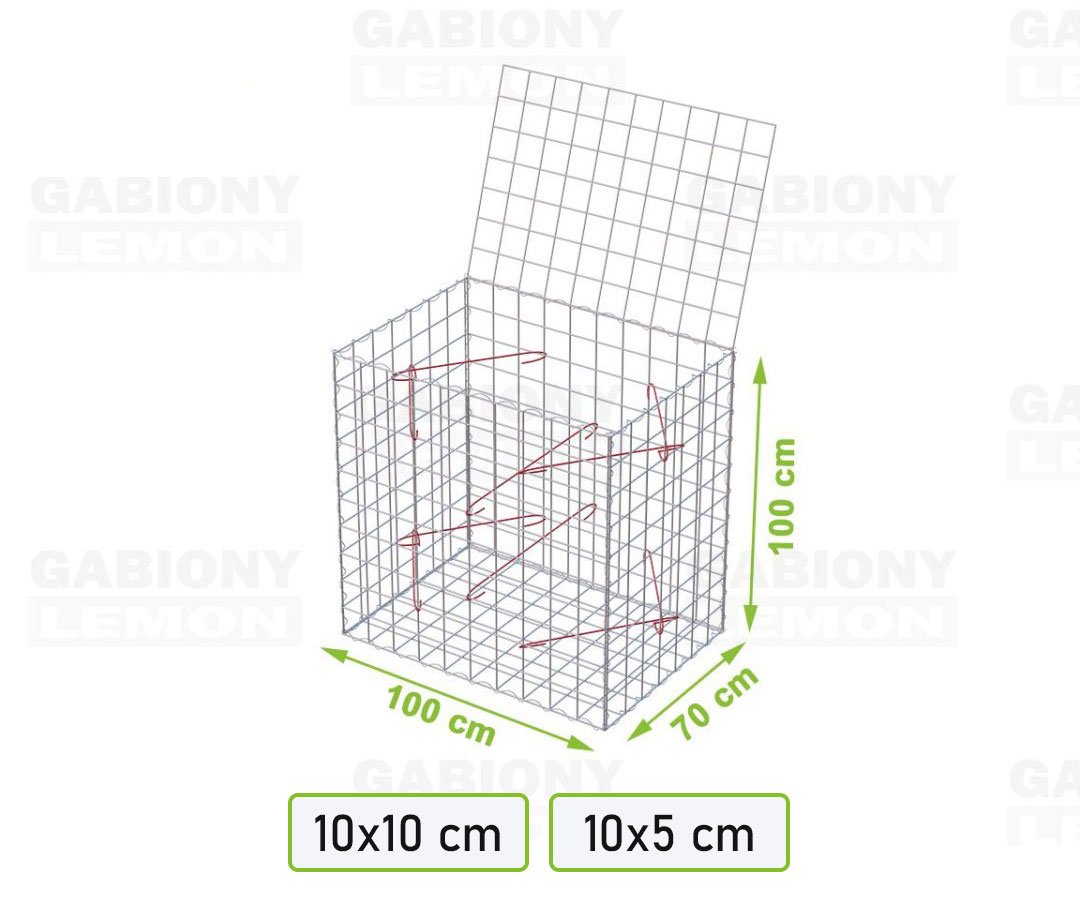 A gabion kosár öntartó szerkezet, amely 6 hegesztett cinkelt hálóból, néhány spirálból és szerelő horogból áll. A hálók 4mm átmérőjű dróttal vannak összehegesztve. A drót felülete speciálisan tartós cink és alumínium öntvény vastag rétege (95% ZN, 5% Al) 350g /1m2. A gabion kosár aljból, oldalsó falakból és fedélből áll. Szétszedve kapható, az egyes falak a szerelési útmutató szerint közvetlenül a helyszínen vannak összeszerelve. A gabionokkal a kertekben, parkokban és nyilvános helyeken különböző terep és dekoratív változások kivitelezhetők. A gabion kosarak támfalként egyre gyakrabban találják meg helyüket a lejtők, folyópartok megerősítésénél.