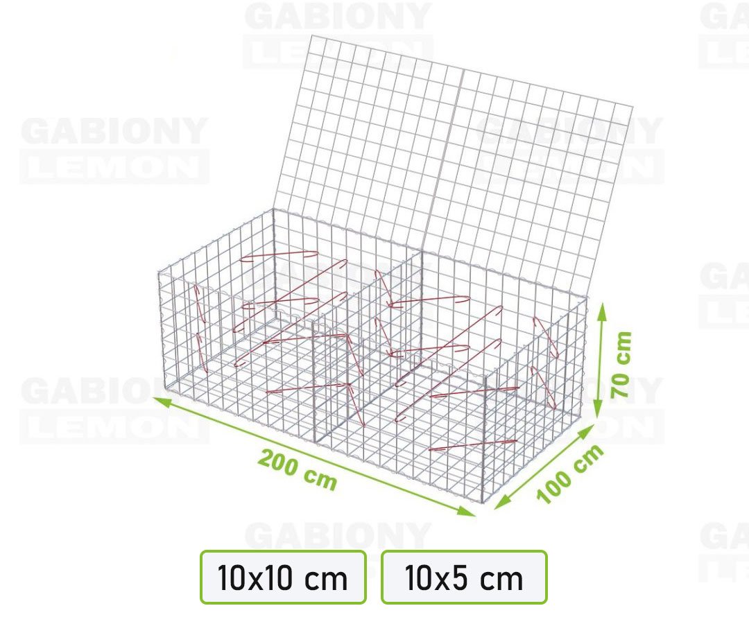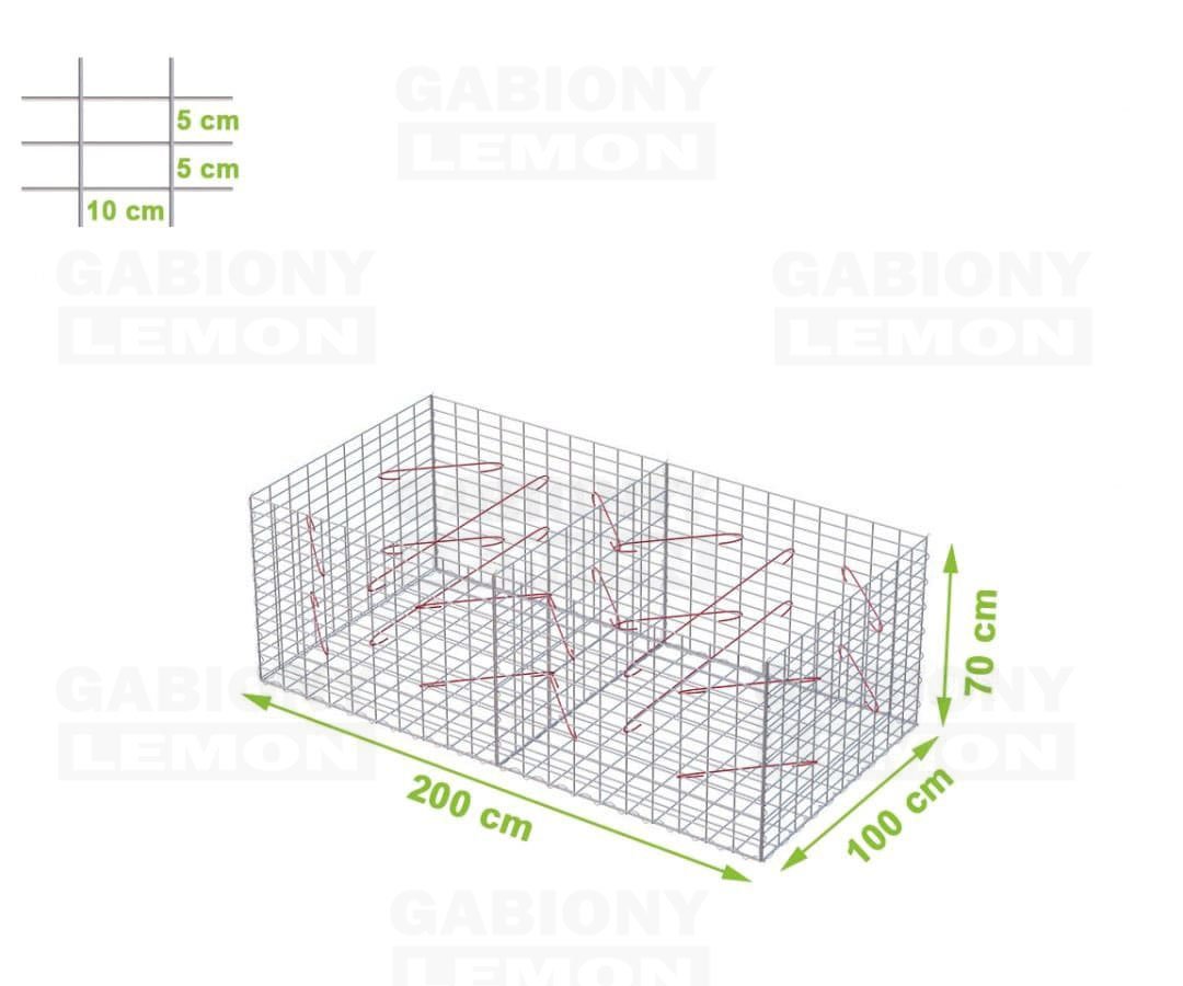 A Gabion kosár egy önhordó szerkezet, amely 6 hegesztett horganyzott hálóból, több spirálból és rögzítőhorogból áll.