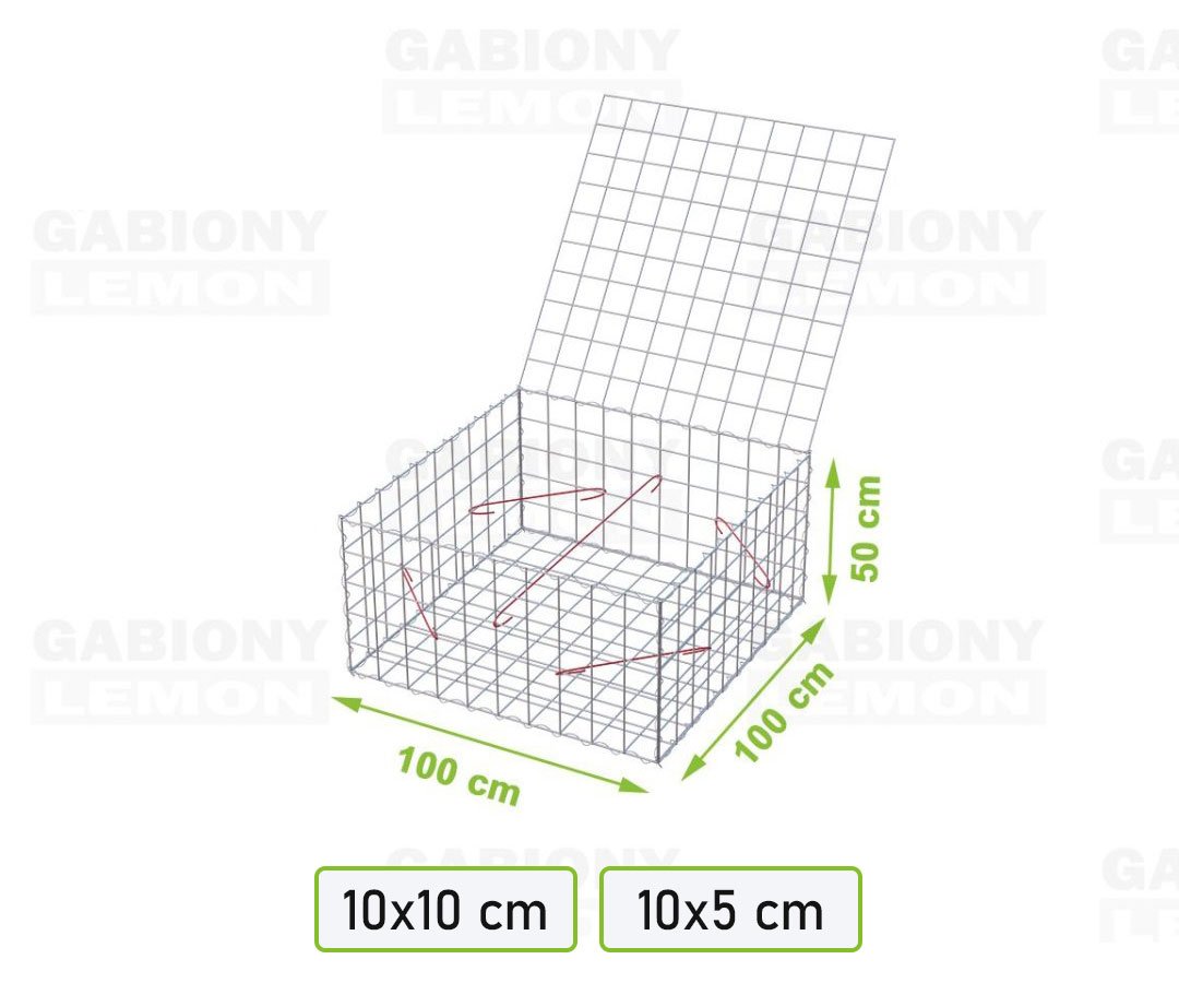 A gabion kosár öntartó szerkezet, amely 6 hegesztett cinkelt hálóból, néhány spirálból és szerelő horogból áll. A hálók 4mm átmérőjű dróttal vannak összehegesztve. A drót felülete speciálisan tartós cink és alumínium öntvény vastag rétege (95% ZN, 5% Al) 350g /1m2. A gabion kosár aljból, oldalsó falakból és fedélből áll. Szétszedve kapható, az egyes falak a szerelési útmutató szerint közvetlenül a helyszínen vannak összeszerelve. A gabionokkal a kertekben, parkokban és nyilvános helyeken különböző terep és dekoratív változások kivitelezhetők. A gabion kosarak támfalként egyre gyakrabban találják meg helyüket a lejtők, folyópartok megerősítésénél.