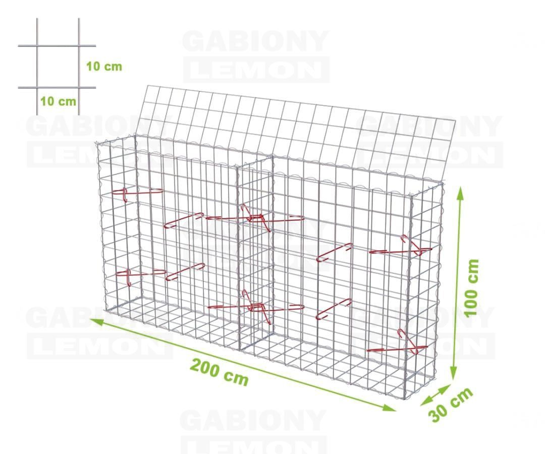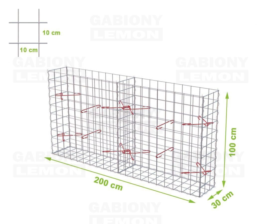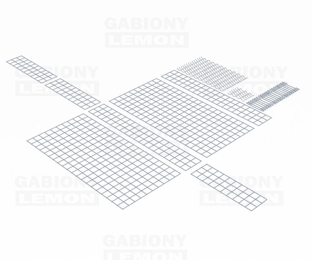 A Gabion kosár egy önhordó szerkezet, amely 6 hegesztett horganyzott hálóból, több spirálból és rögzítőhorogból áll.